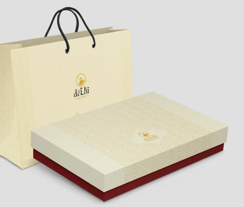 Our signature 12x8" luxe box. A decadent hardcover box in soft ivory, gold, and burgundy tones, adorned with a sleek metallic design. Thoughtfully crafted for luxury gifting. Whether for friends, clients, or colleagues, this box is designed to leave a lasting impression, visually and on your taste buds.